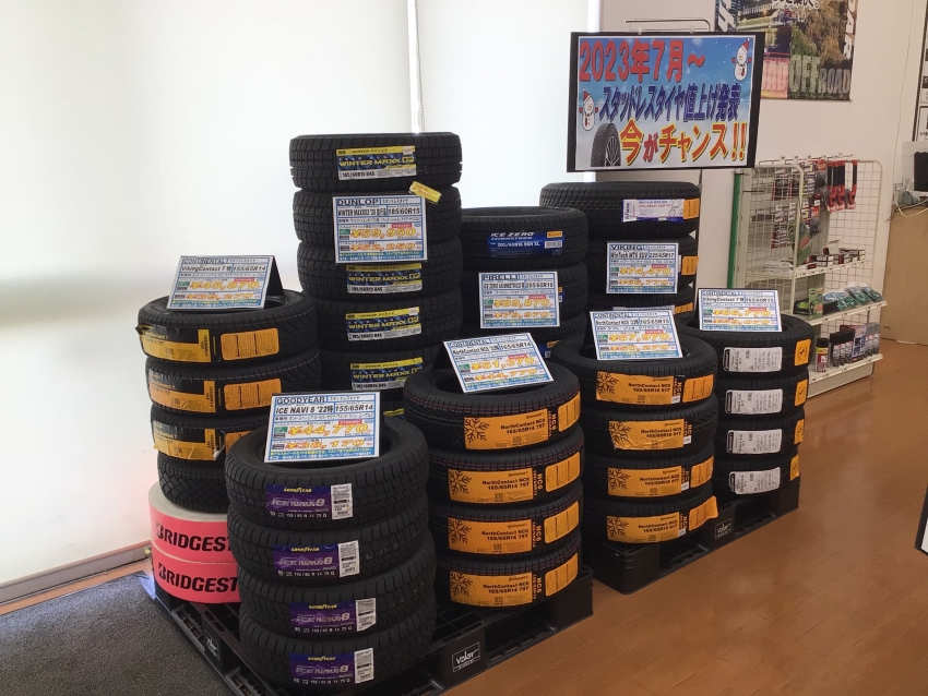 当店、値上げ前という事でスタッドレスタイヤの在庫の一部