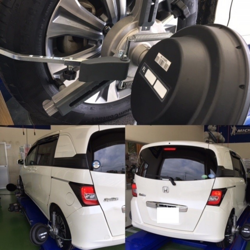 ご予約のフリードスパイクのお客様にタイヤ交換とホイールアライメント