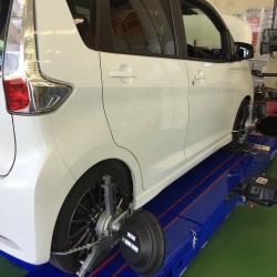 お客様は以前からタイヤの偏磨耗が気になっていた為、タイヤ交換と同時にホイールアライメント調整もおこなっていただきました。