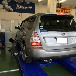 最近、車高調を取付けたそうでだいぶ基準値より外れていましたのでしっかり基準値まで調整しました。