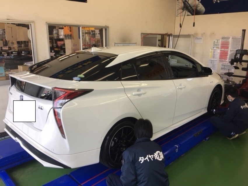 本日は新車のプリウスのお客様にホイールアライメント調整をさせて頂きました。