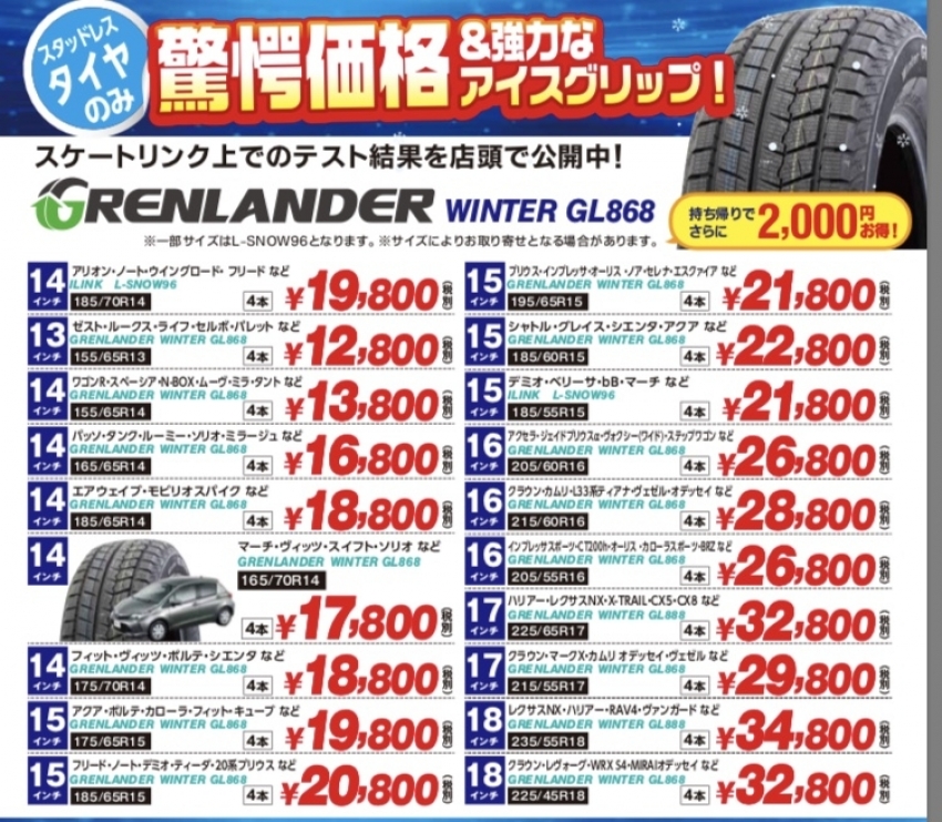 グレンランダーのスタッドレスタイヤが激安価格!!!