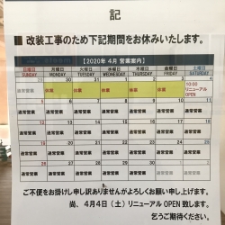 3/30~4/3まで改装工事の為