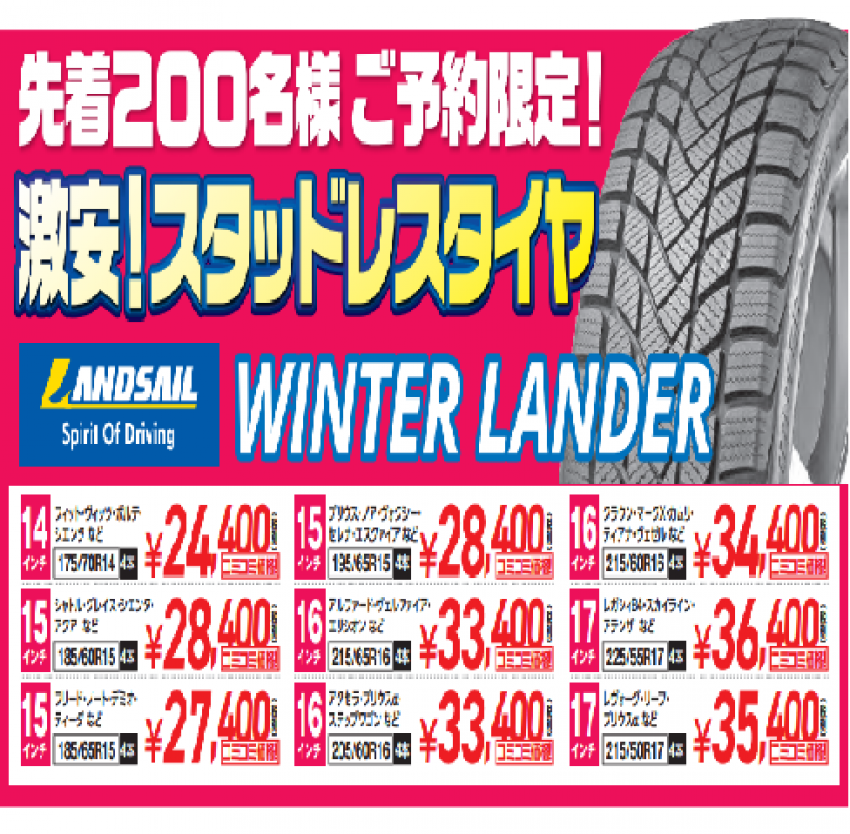 スタッドレスタイヤの紹介です!!
