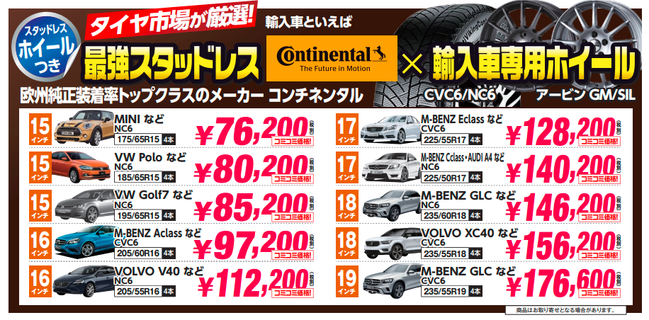 国産車のスタッドレスタイヤも