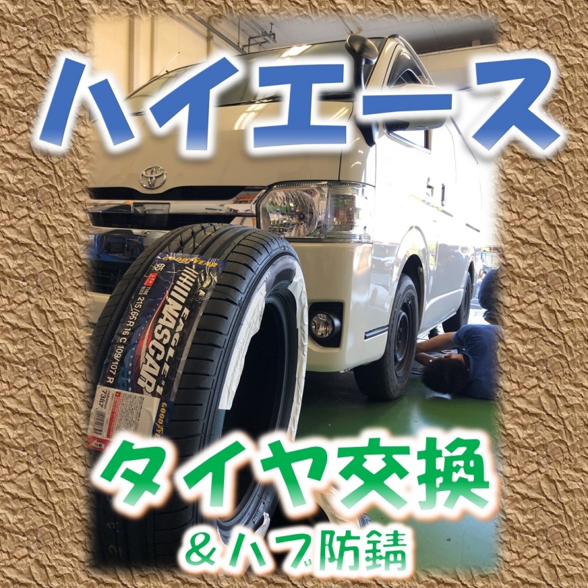 トヨタ ハイエース タイヤ交換&ハブ防錆(グットイヤー・ナスカー・215/65R16)
