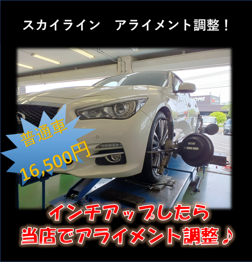 スカイラインのアライメント調整させていただきました!