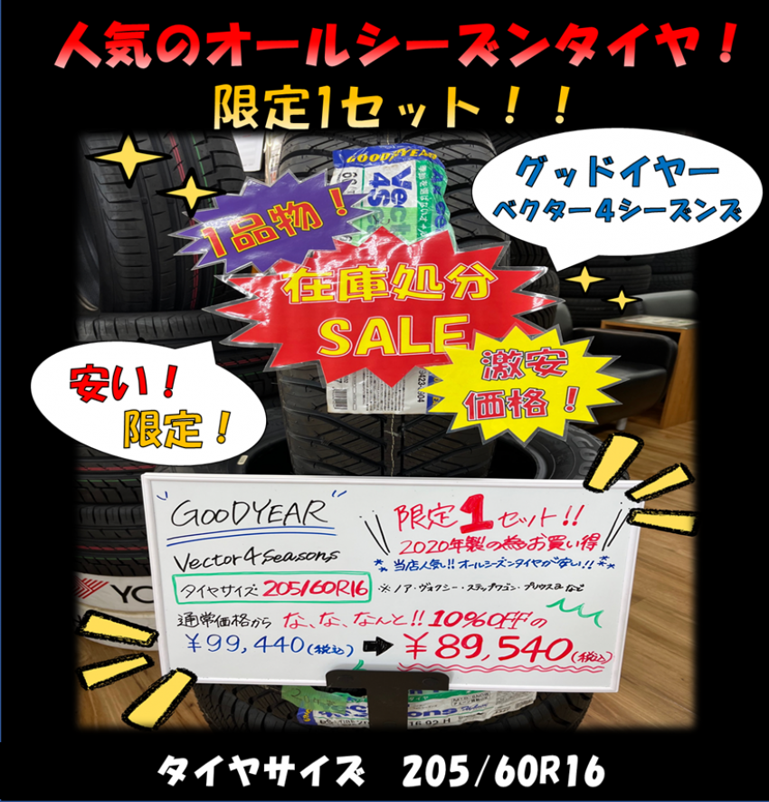 1セット限り!!20年製グッドイヤーのオールシーズンタイヤが安い!タイヤサイズが205/60R16なら必見です!!
