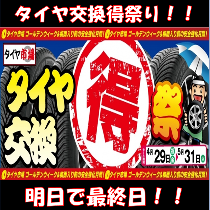 タイヤお得に買うならイベント中の今!タイヤ交換得祭★明日で最終日!!