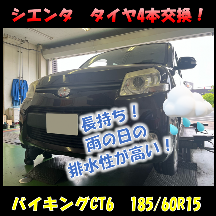 梅雨時期にオススメタイヤ!バイキングCT6!シエンタ4本交換【185/60R15】
