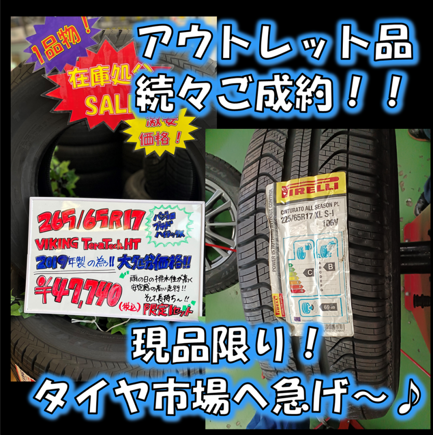 アウトレット品続々ご成約中!現品限りのお得タイヤまだまだあります♪