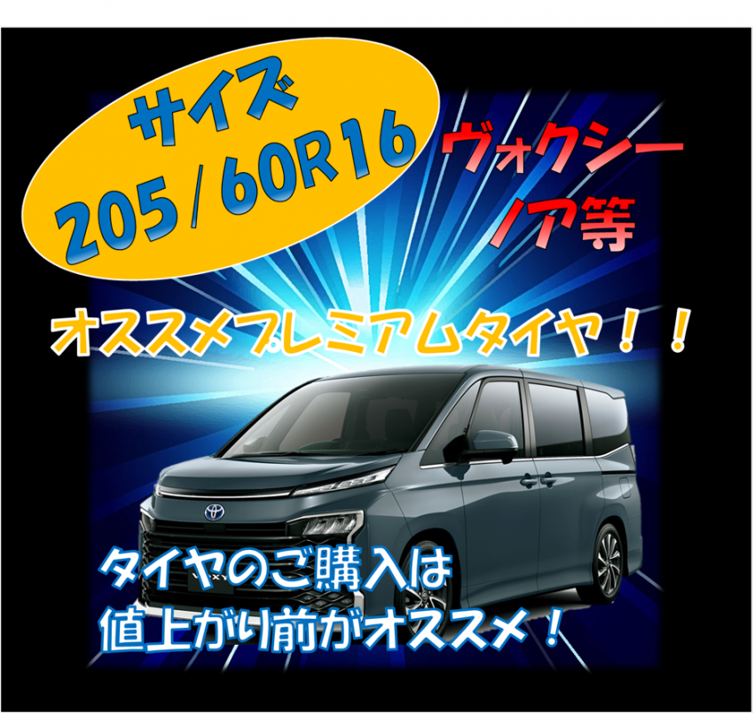 というわけで今回はノア、ヴォクシーにピッタリのプレミアムタイヤ 205/60R16サイズをご紹介致します!