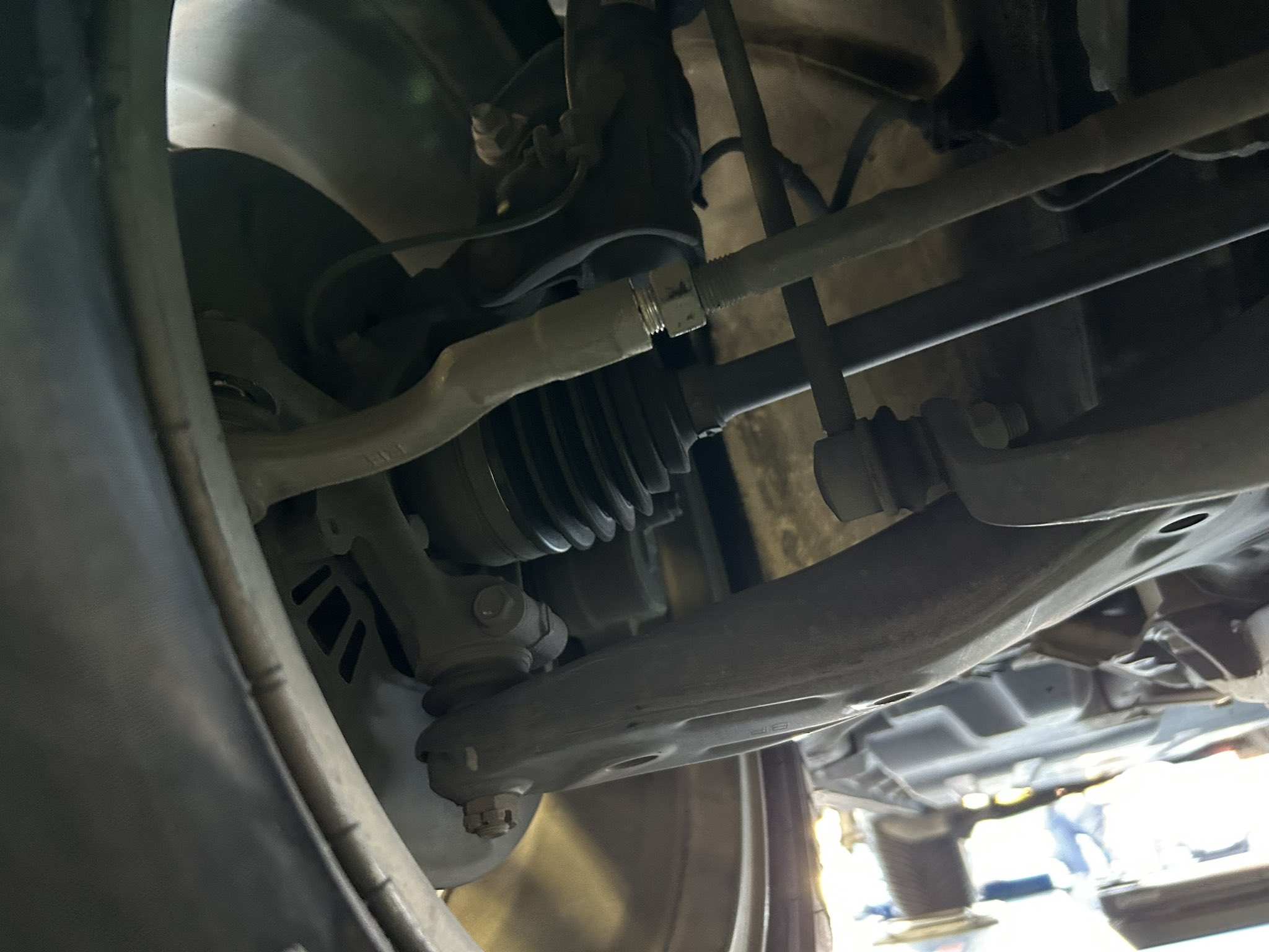 Fni1DRTaIAAAyaw.jpgフロントのトゥ角はタイロッドを使って調整していきます※調整の為既になっとは緩めてあります。