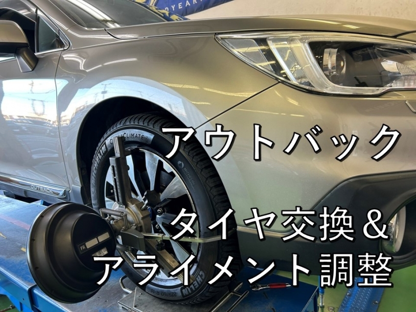 スバル:アウトバックのタイヤ交換とアライメント調整をさせて頂きました!