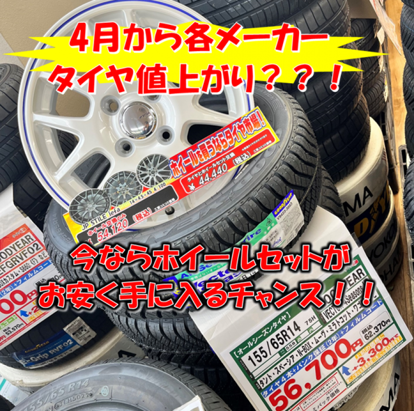 4月から各メーカータイヤ値上げ!!今後はホイールも!!