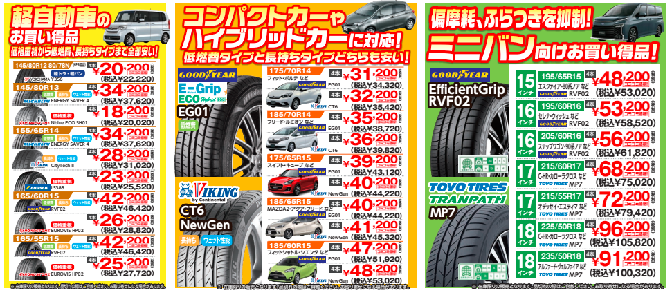 またサマータイヤやオールシーズンタイヤなど