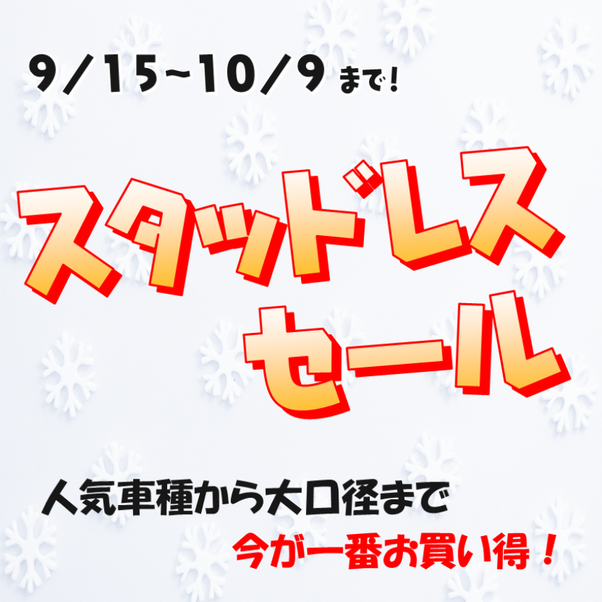 タイヤ市場 スタッドレスセール開中! 早い者勝ち!旧年製・旧モデル・有名メーカー品多数! 9/15(金)~10/9(月・祝)まで開催中!