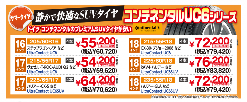 ドイツの有名ブランド、コンチネンタルタイヤUC6です!!!