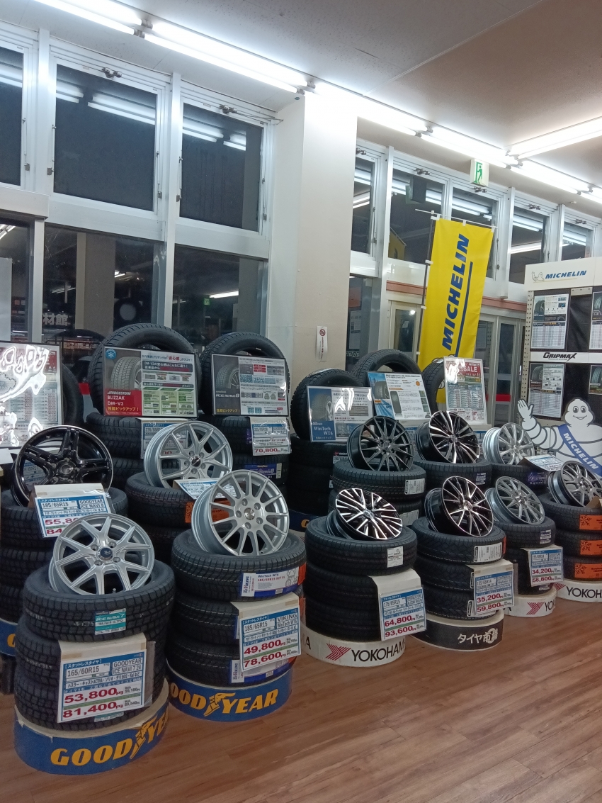 タイヤ市場加須店ではスタッドレスタイヤ、オールシーズンタイヤの在庫がたくさんごさいます。