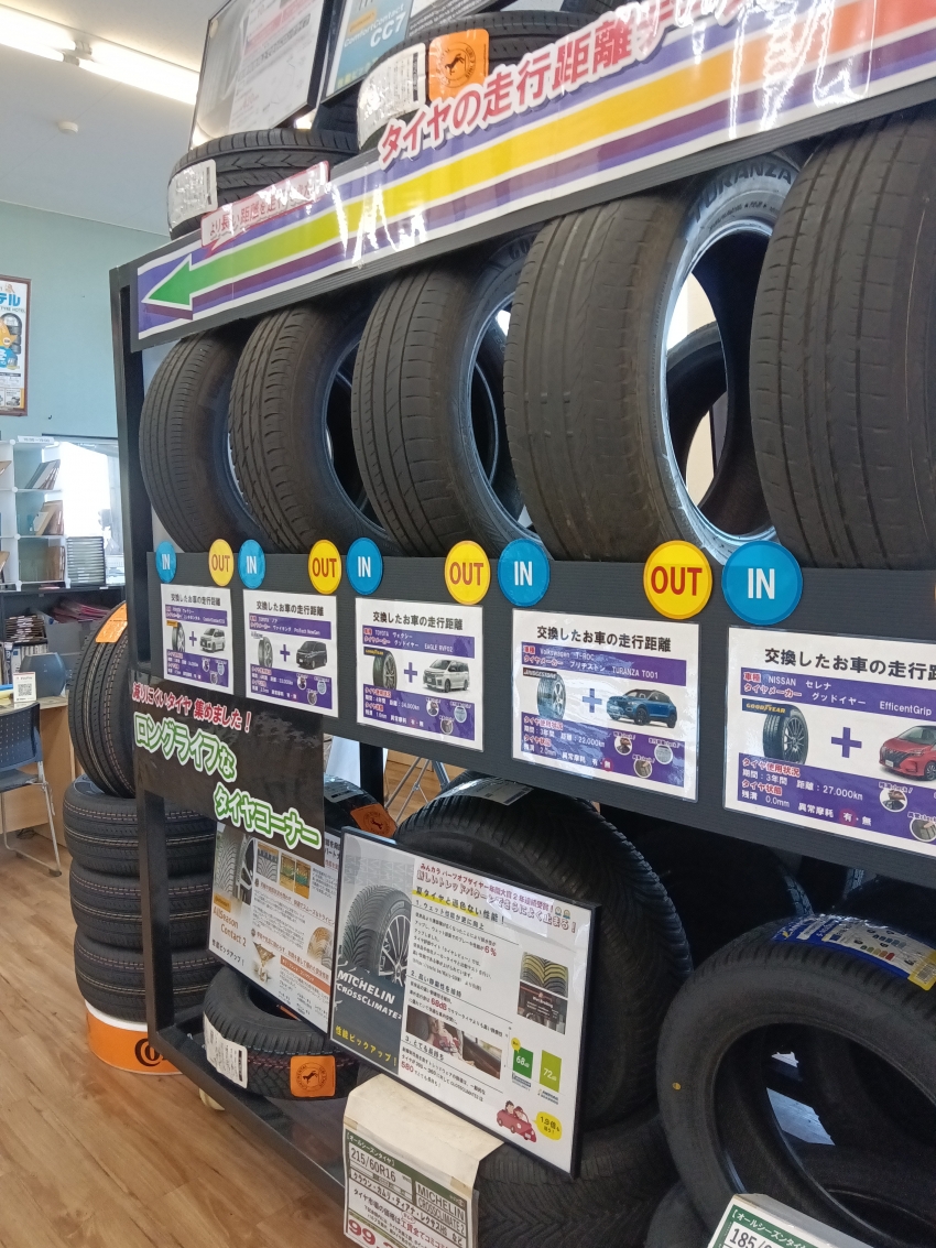 タイヤ市場加須店ではロングライフタイヤコーナーを設けております。