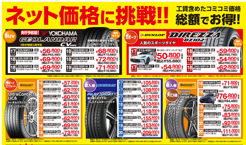 話題の新作タイヤから、コスパ最強の海外ブランドまでチラシ限定価格で大放出!