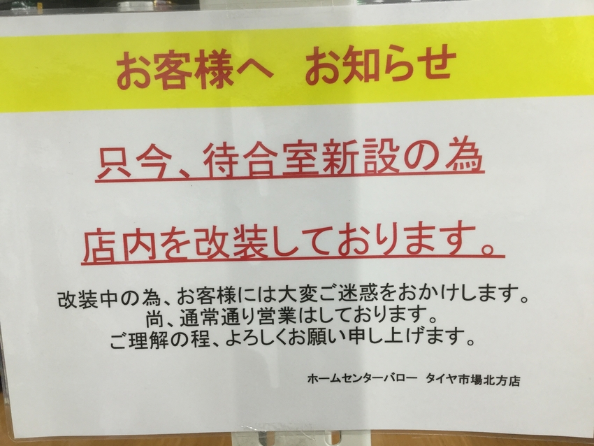 特に冬の一番混み合う時期、お客様には作業で大変お待ち頂くこともありますので(ピット作業員は迅速な作業を心掛けています)ホームセンターでお買いものか、待合スペースでくつろいで頂ければ幸いです。