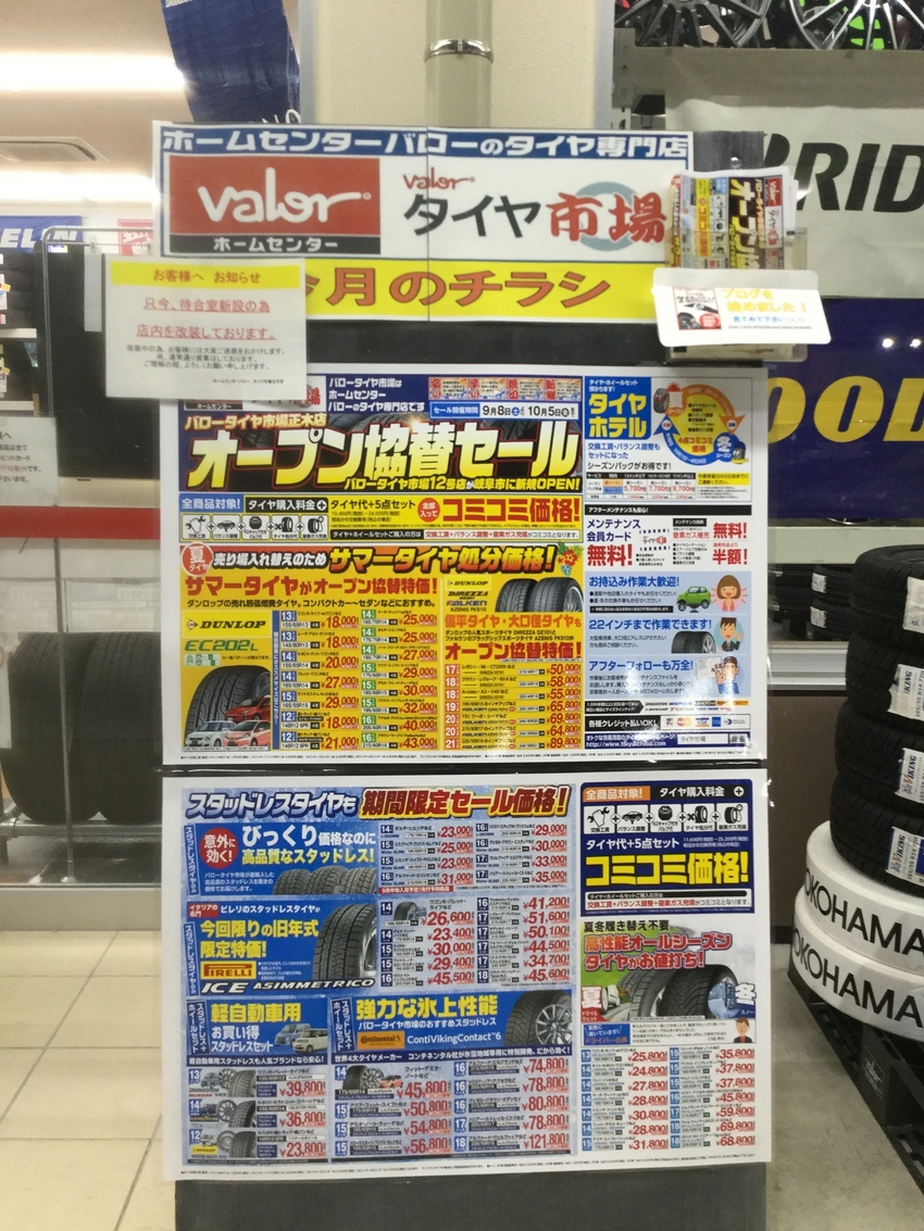 バロータイヤ市場12号店目が正木店に本日よりオープンしたのを記念して北方店を含め既存店でもオープン協賛セールとして旧年製スタッドレスタイヤを販売しています。(一部の店舗は周年祭として出しています。)