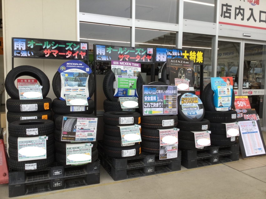 通常のサマータイヤだけではなく、今話題の雨に強い「オールシーズンタイヤ」も合わせてご案内いたしております(*^^*)