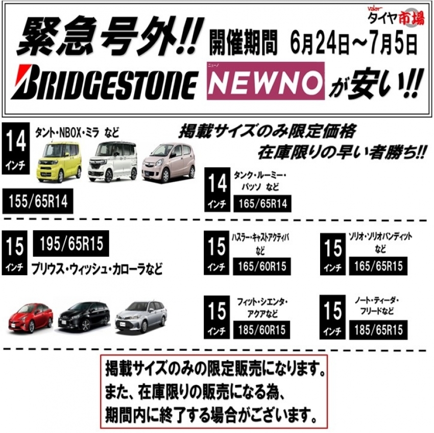 世界シェア第2位ブリヂストン『NEWNO』が大変お値打ちに手に入れられる、この機会をぜひお見逃しなく!!