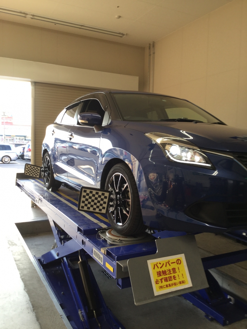 本日は、スズキ・バレーノでのアライメント作業をさせて頂きました。