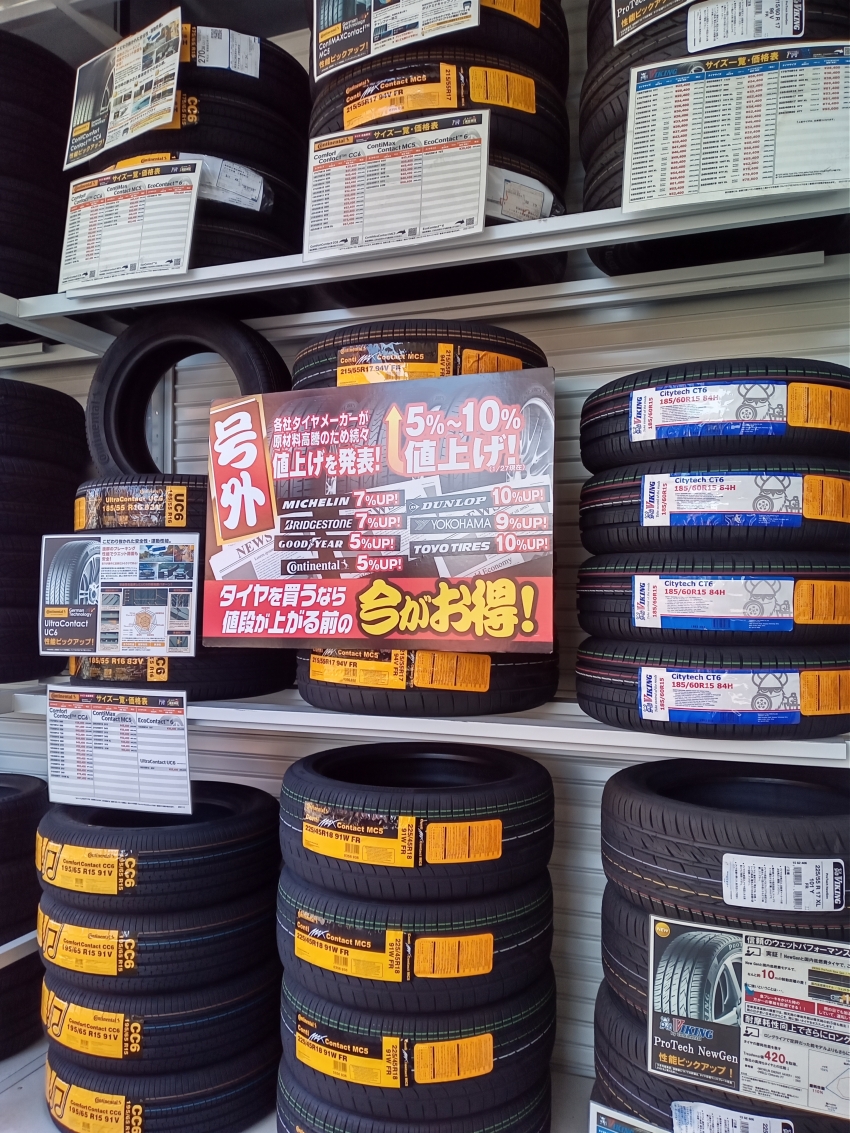 春からタイヤの値上がりが発表されていますので