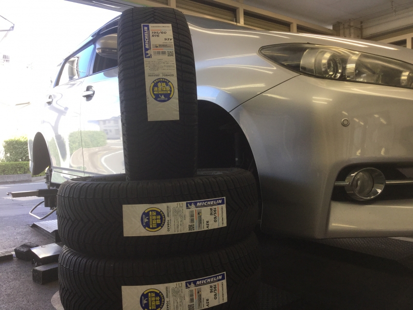 今日はウィッシュにお乗りのお客様にミシュランのオールシーズンタイヤ