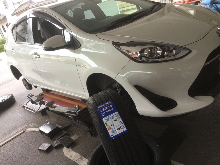 アクアに格安タイヤ!ランドセイル!(´▽`)ノ