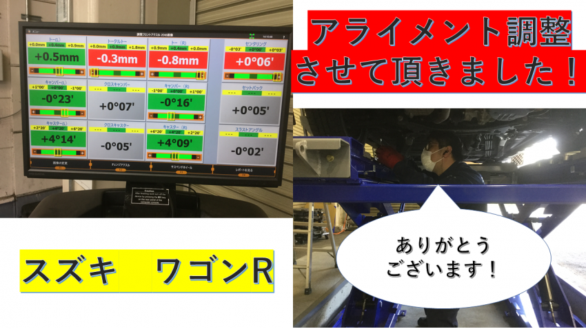 スズキ ワゴンR アライメント調整させて頂きました!!(。・ω・)ノ゙