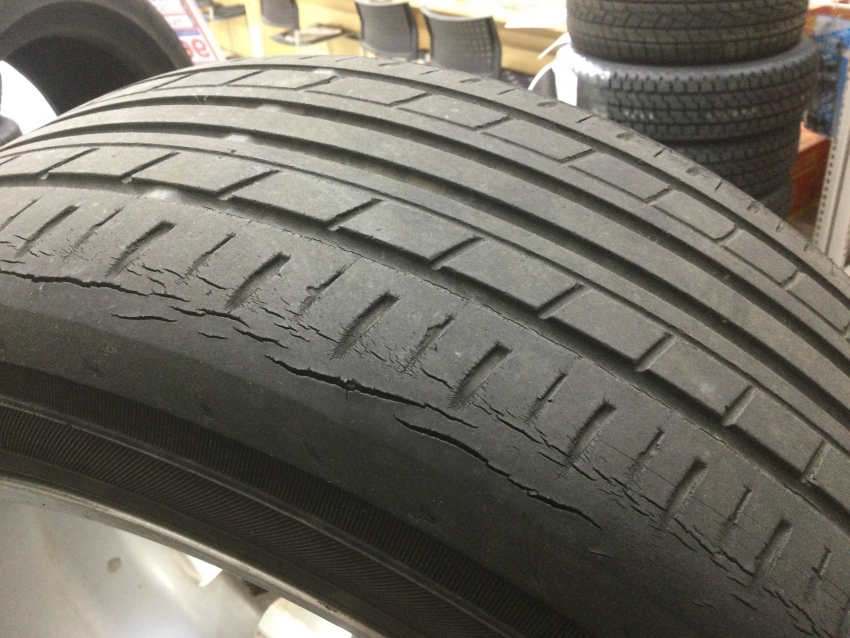 タイヤにくっきりとヒビが入っていることがわかると思います