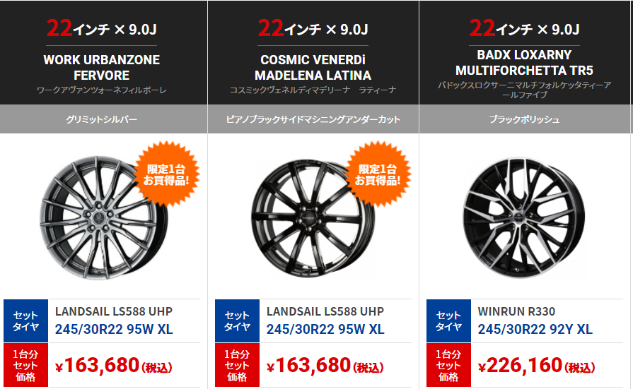 上記の画像がアルファード&ヴェルファイアにオススメしたいホイールセットの一部となりますが、これ以外にもお買い得品が盛り沢山となっております!!