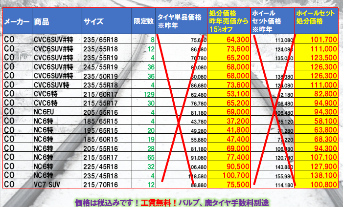 旧年製スタッドレス大特価セール開催中です!(^^)!