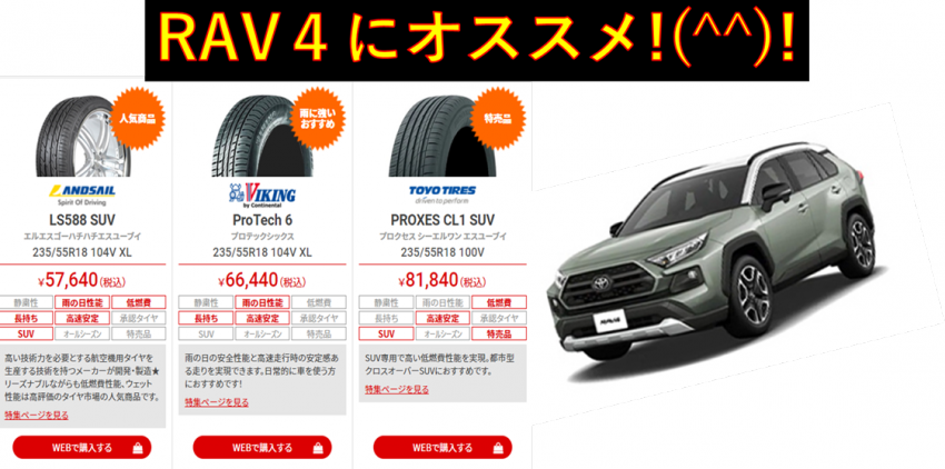 TOYOTA:RAV4にオススメのお買得夏タイヤをご紹介!(^^)!