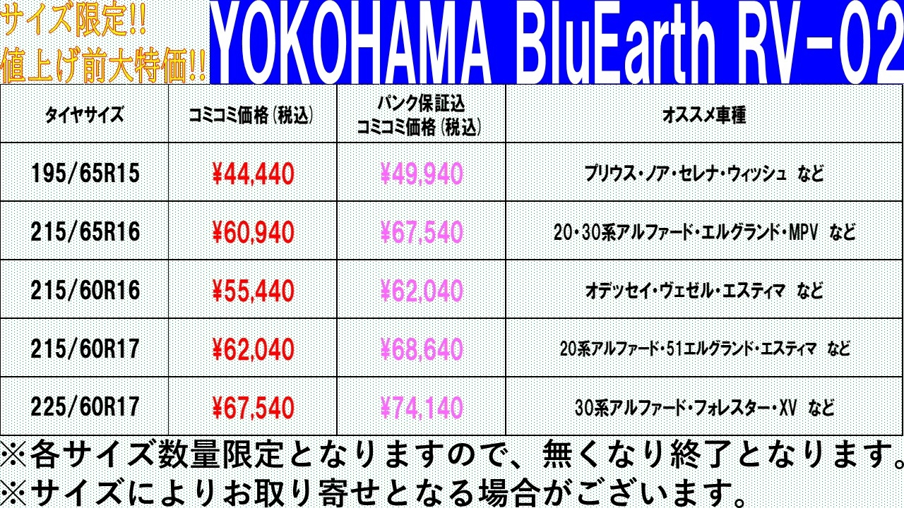 【値上げ前特価】ヨコハマのミニバン専用タイヤがお買得!?