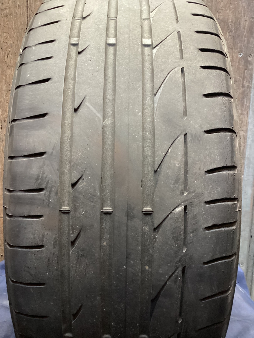 タイヤの内側と外側で明らかに減り方が変わっている事が分かると思います。