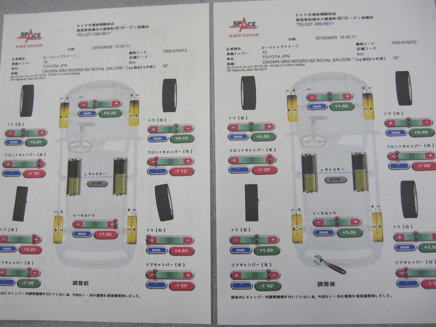 アライメント調整(クラウン)後ろタイヤの外減り改善(^^)/