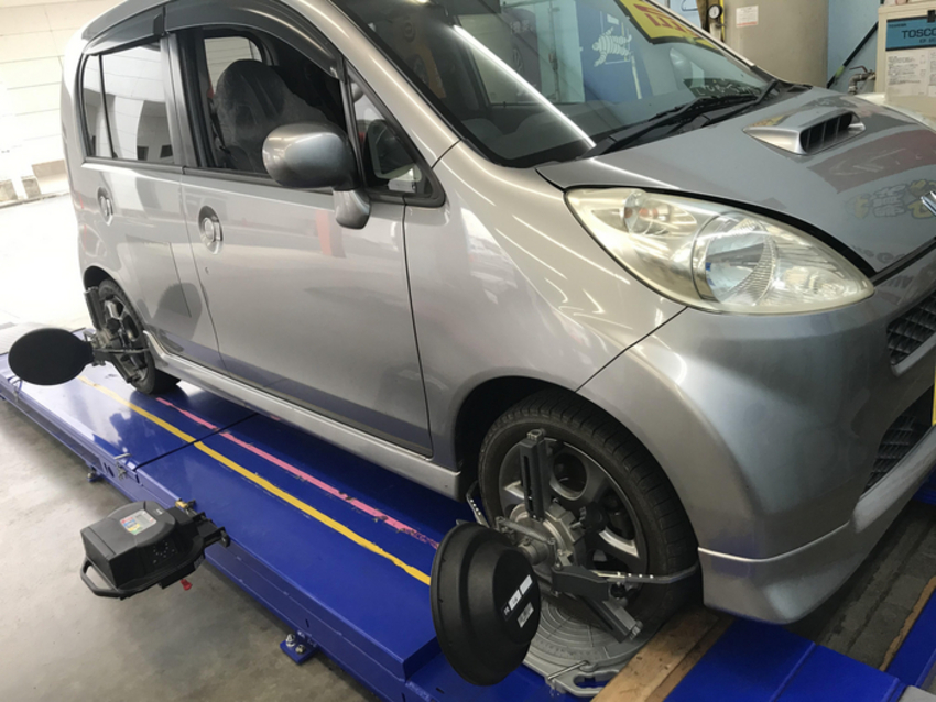 ロアアーム交換後、ハンドルセンターが大きくズレてしまった。という事で今回アライメント調整を行わせて頂いております