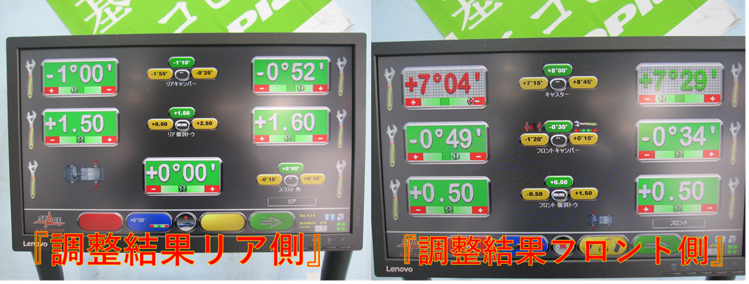 リア側トウ角とフロント トウ角が基準値からズレが発生〔汗〕