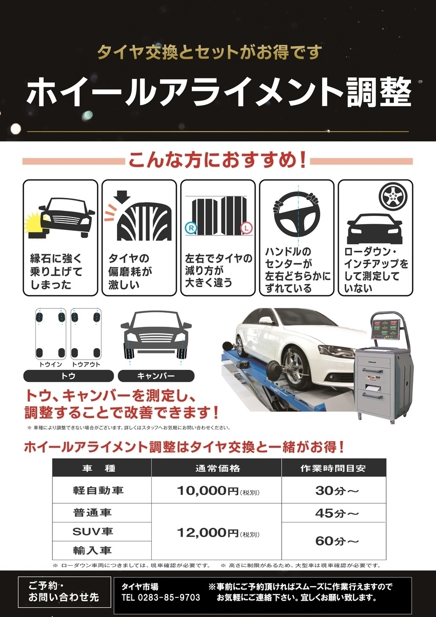 タイヤ市場は輸入車のアライメントも大歓迎( *´艸`)