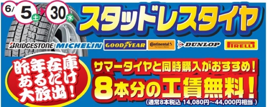 スタッドレスタイヤの昨年在庫を、お安い値段で購入できるチャンスです!