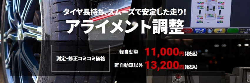 タイヤの片ベリや、ハンドルセンターのズレ等の症状がある場合、アライメント調整をお勧めします!