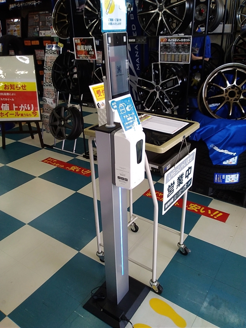 タイヤ市場では徹底した除菌や予防を行っております!