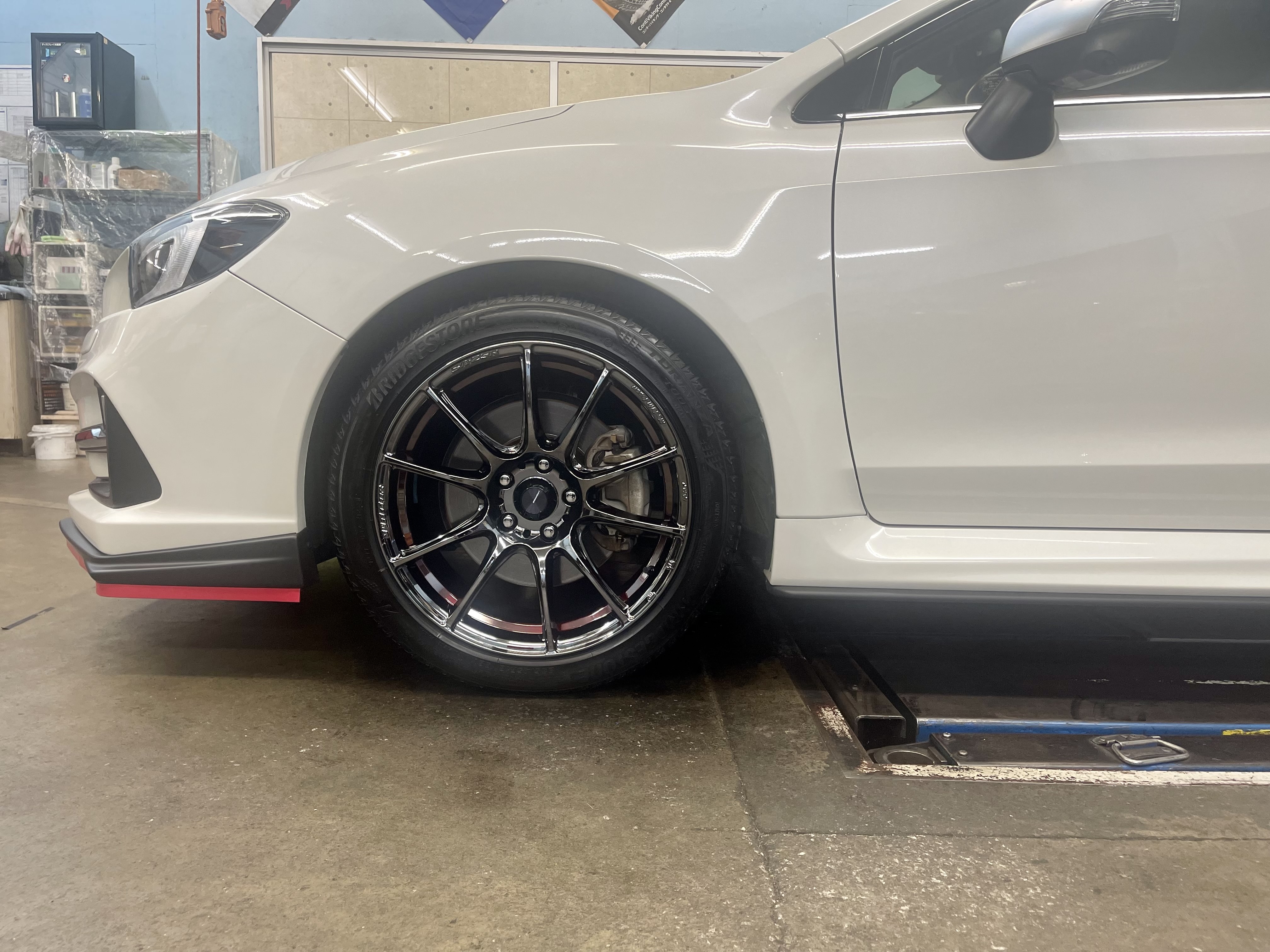今回はレヴォーグのフロントリップが赤色 STIも赤色なので赤ライン入りをチョイスしましたが