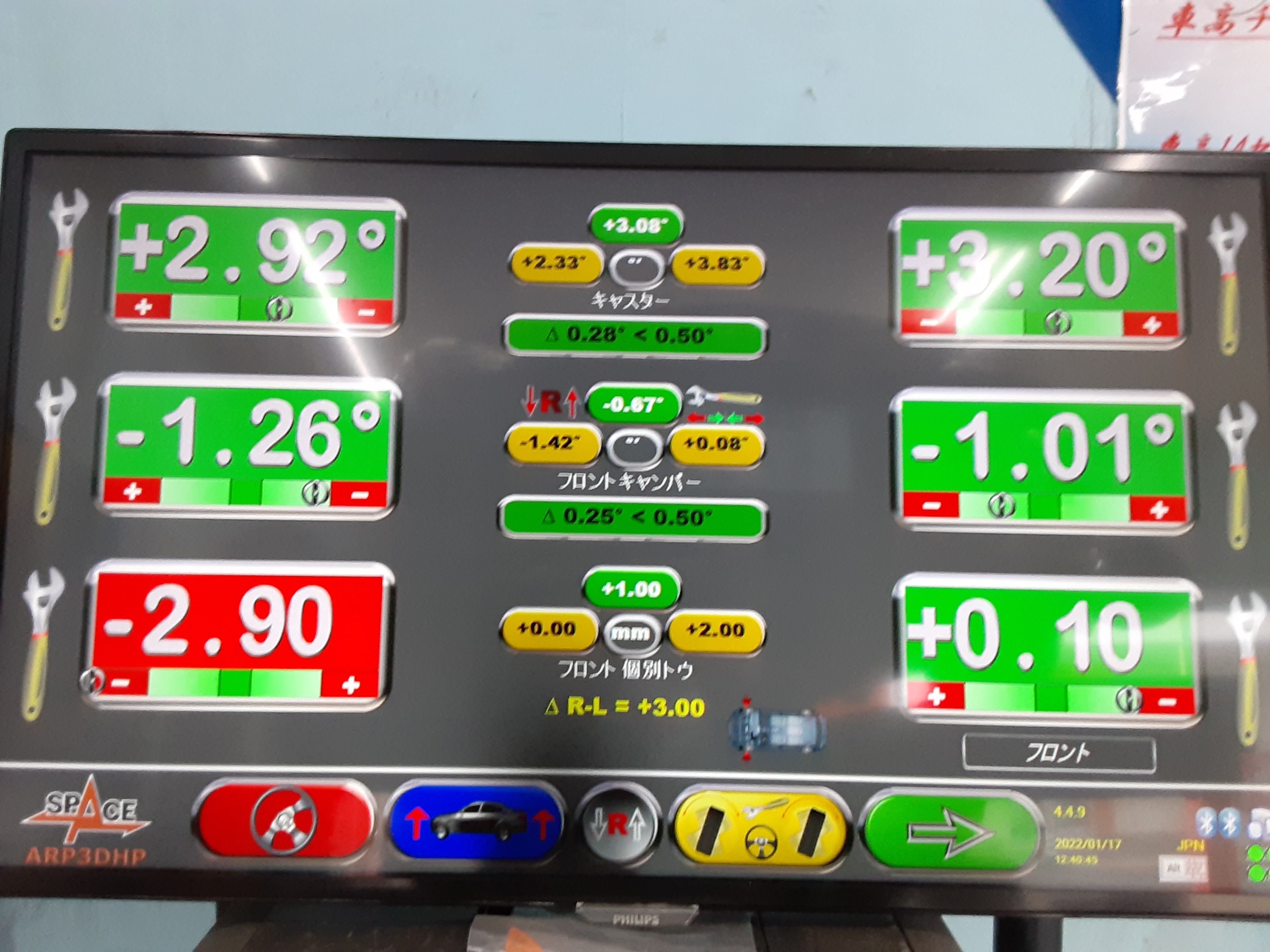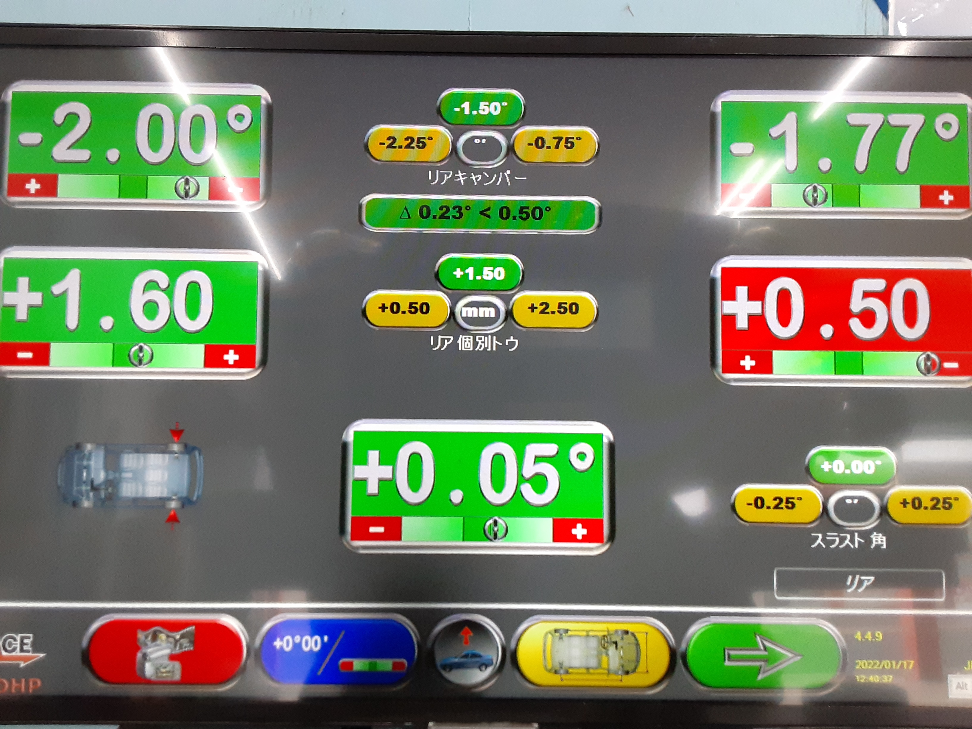 無事基準値に調整を行い、ハンドルセンターも元通りとなりました♪
