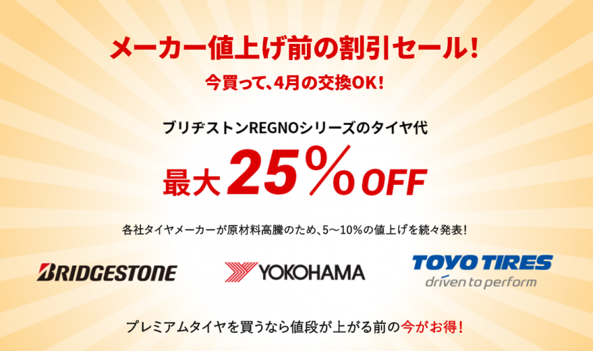 タイヤを買うなら今が安い!各社タイヤメーカーが値上げを発表!!